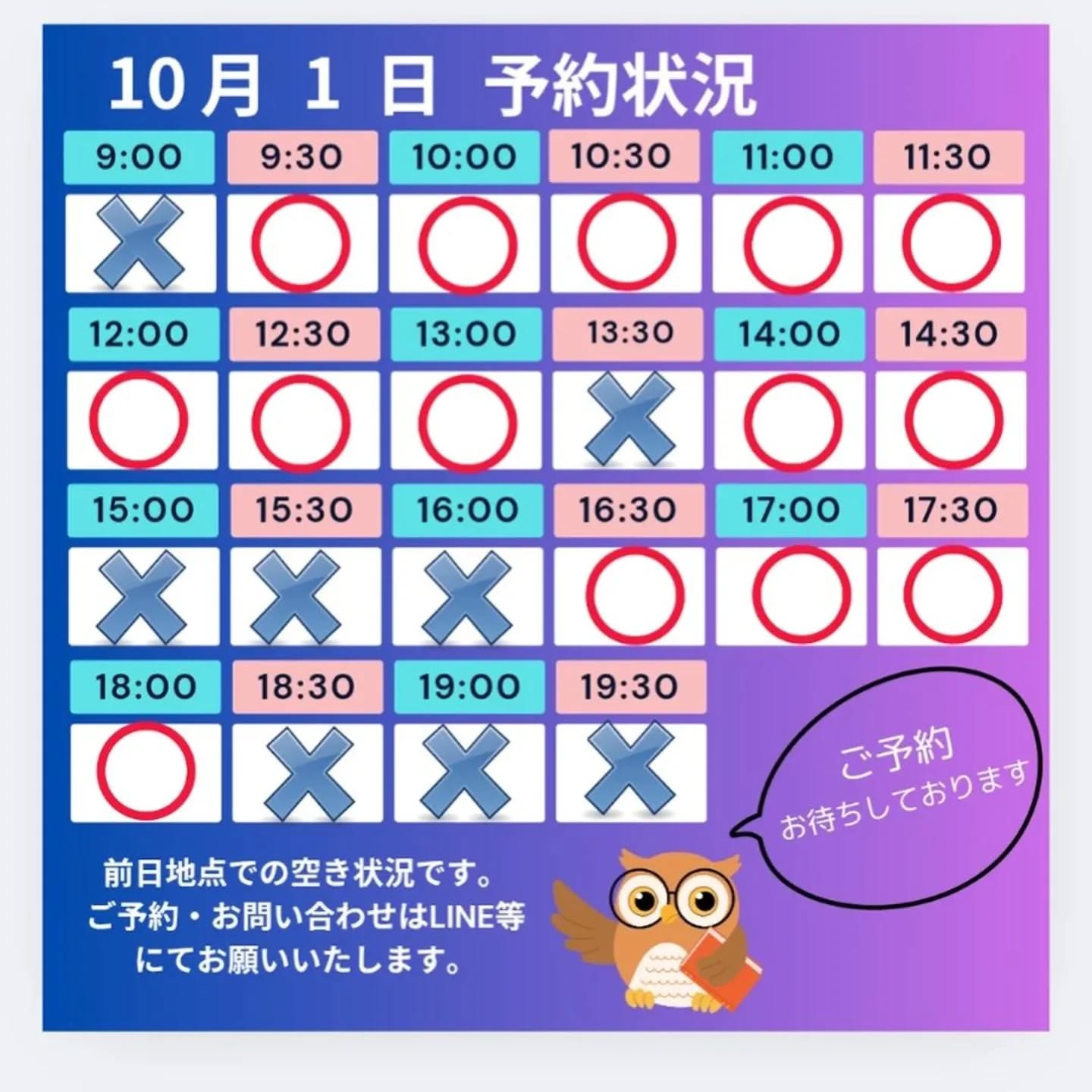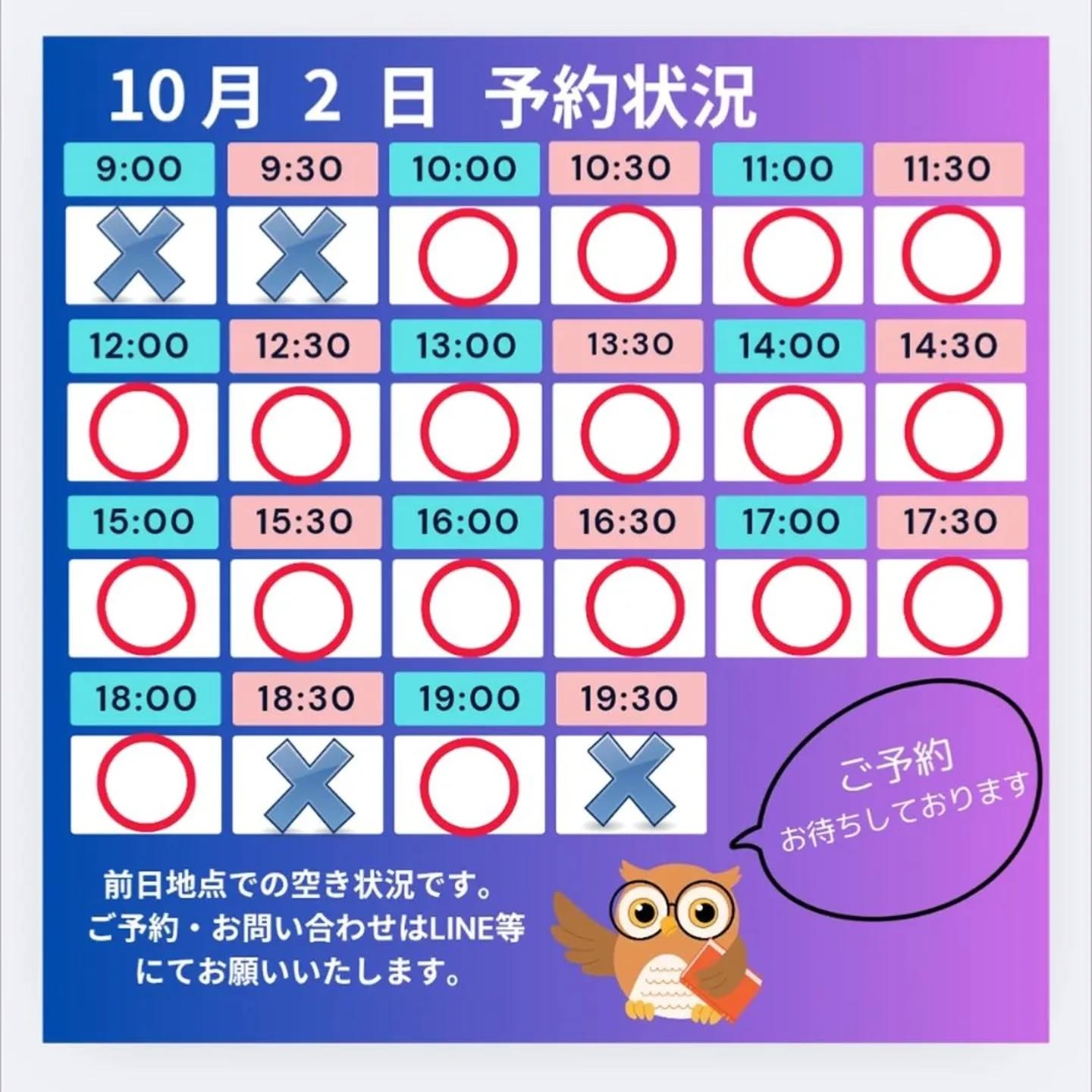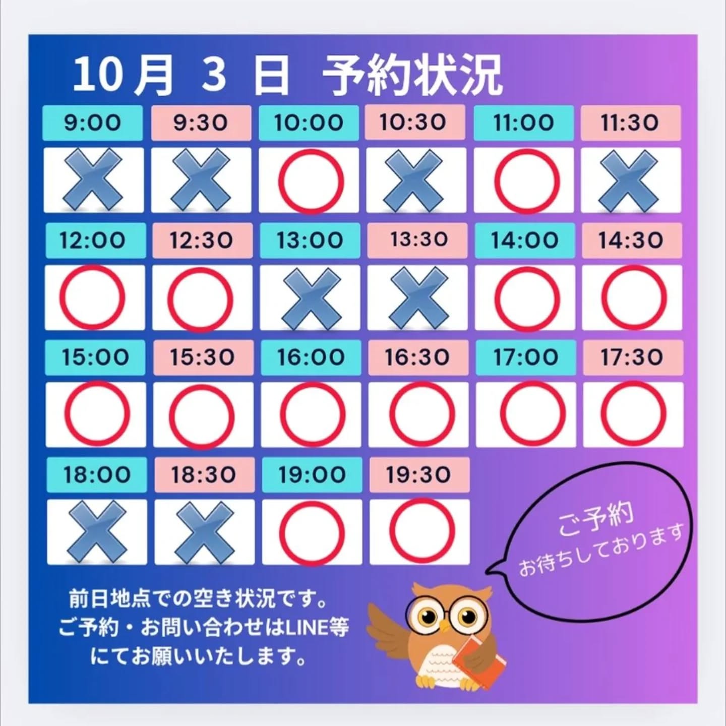 野江内代駅にある「うちんだい整骨院・整体院」のご予約状況です。