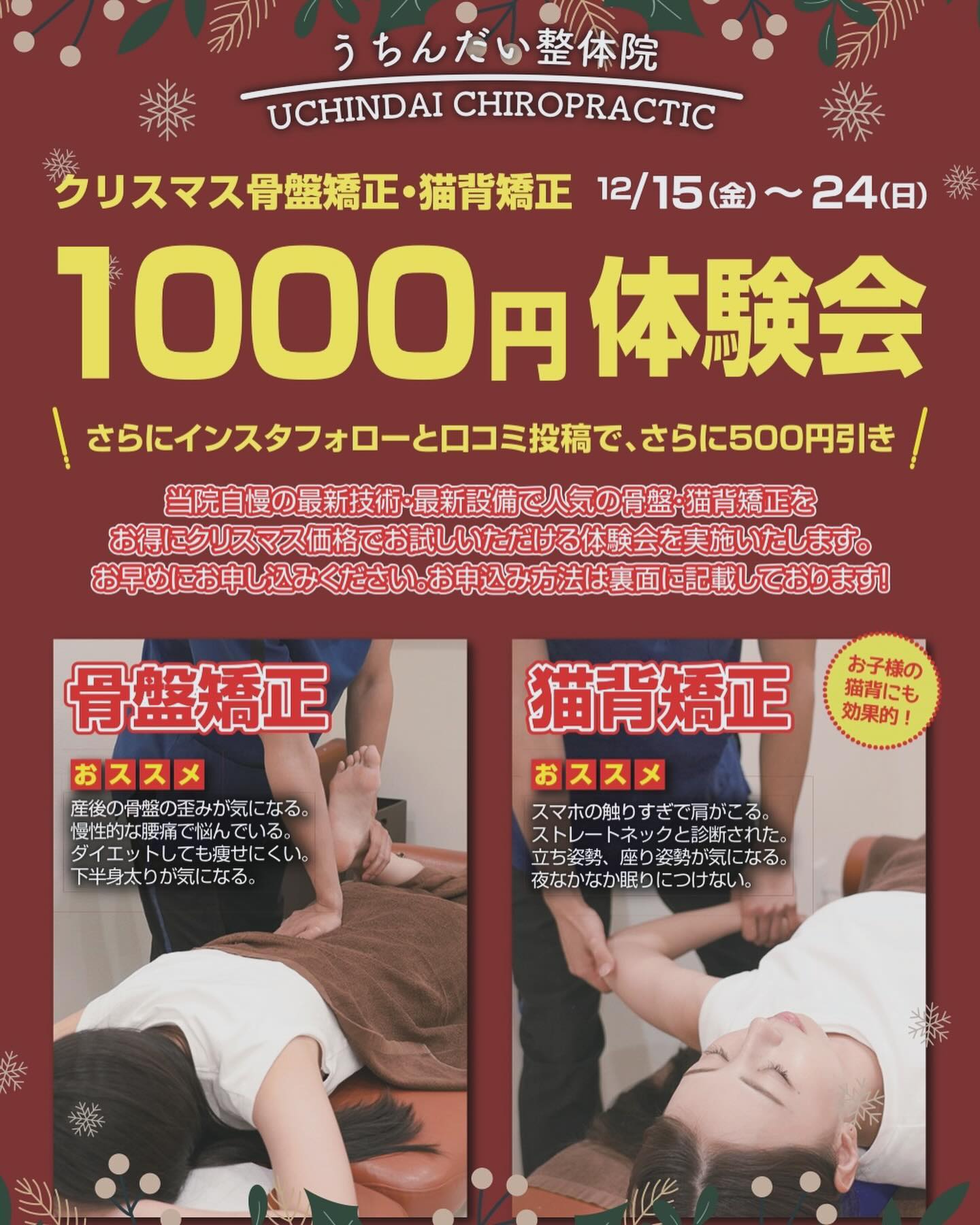 うちんだい整骨院・整体院では、体験会を行っております。